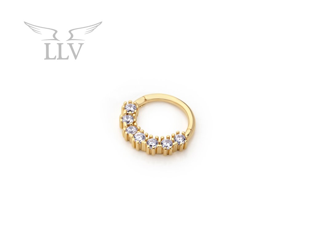 Zlatý piercing kroužek se zářivými zirkony LLV92-GPI021SP