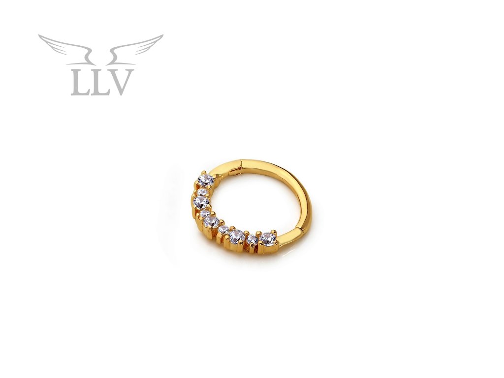 Zlatý piercing kroužek se zirkony LLV92-GPI028SP