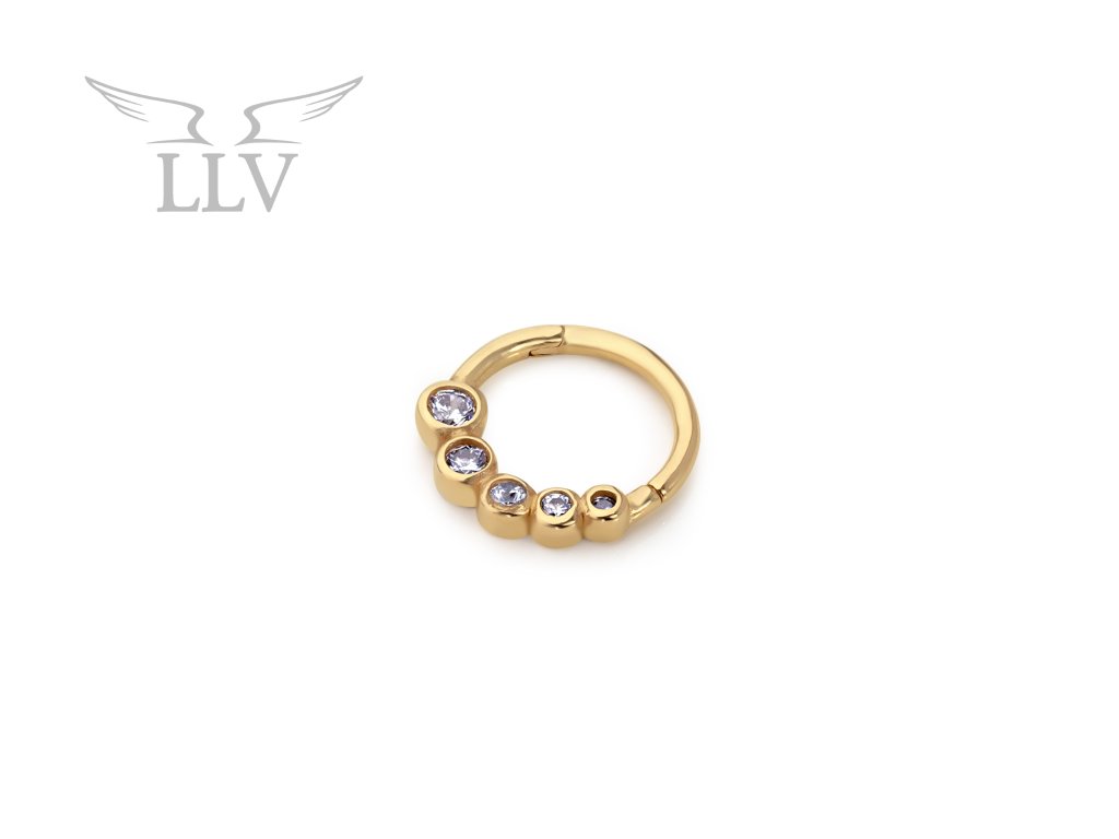 Zlatý piercing kroužek zdobený zirkony LLV92-GPI027SP