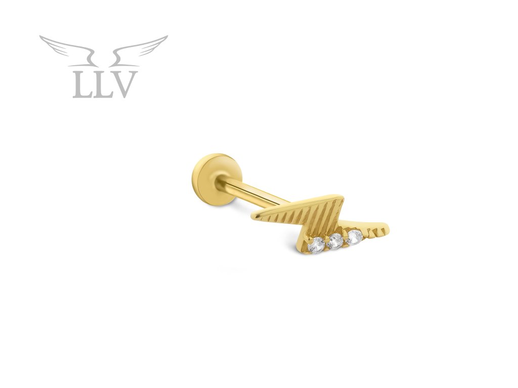Zlatý piercing labreta blesk se zirkony LLV92-GPI111LB