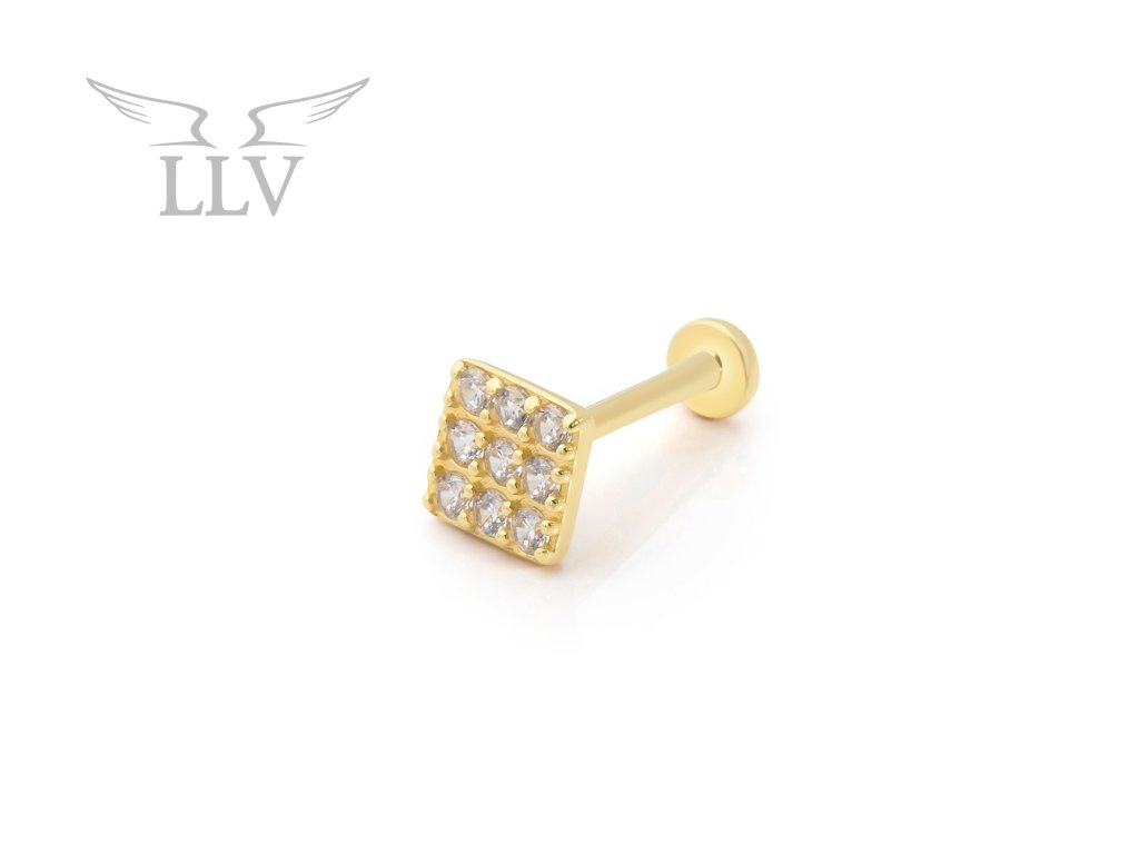 Zlatý piercing labreta čtverec zdobený zirkony LLV92-GPI094LB