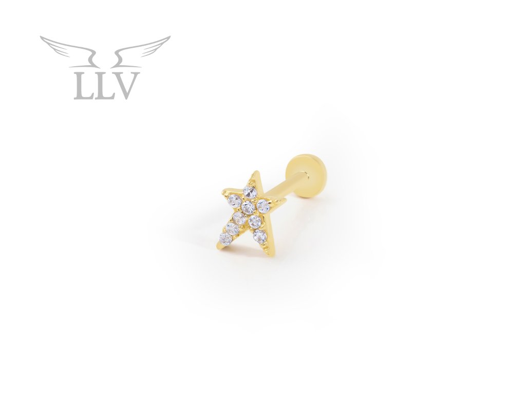 Zlatý piercing labreta hvězda se zirkony LLV92-GPI073LB