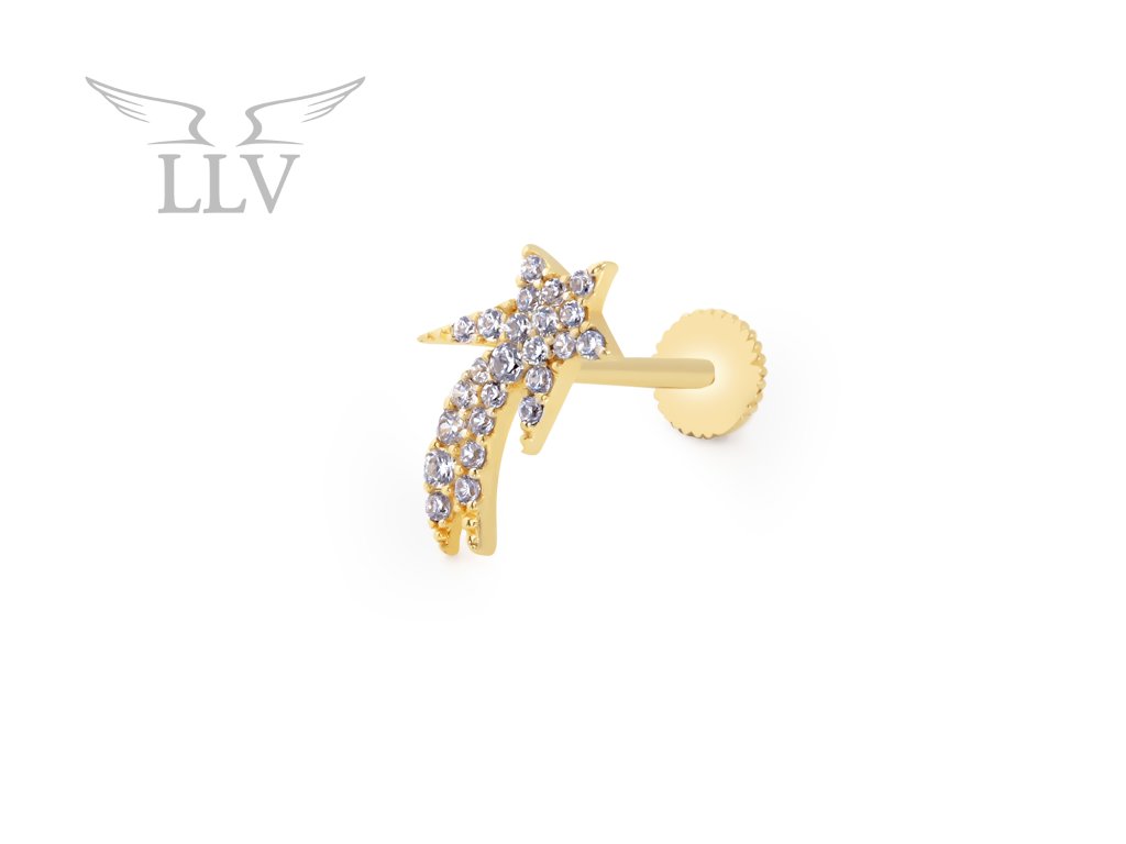 Zlatý piercing labreta hvězda se zirkony LLV92-GPI121LB