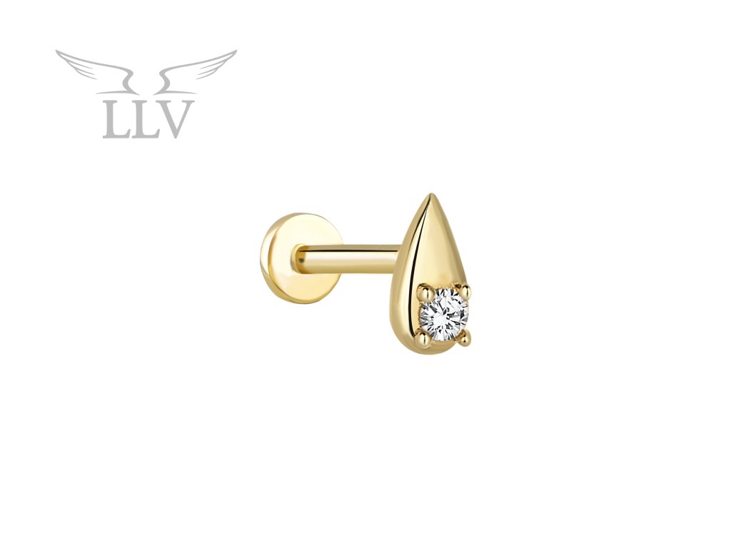 Zlatý piercing labreta kapka se zirkonem LLV92-GPI055LB
