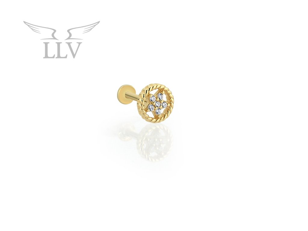 Zlatý piercing labreta kruh s hvězdou zdobenou zirkony LLV92-GPI071LB
