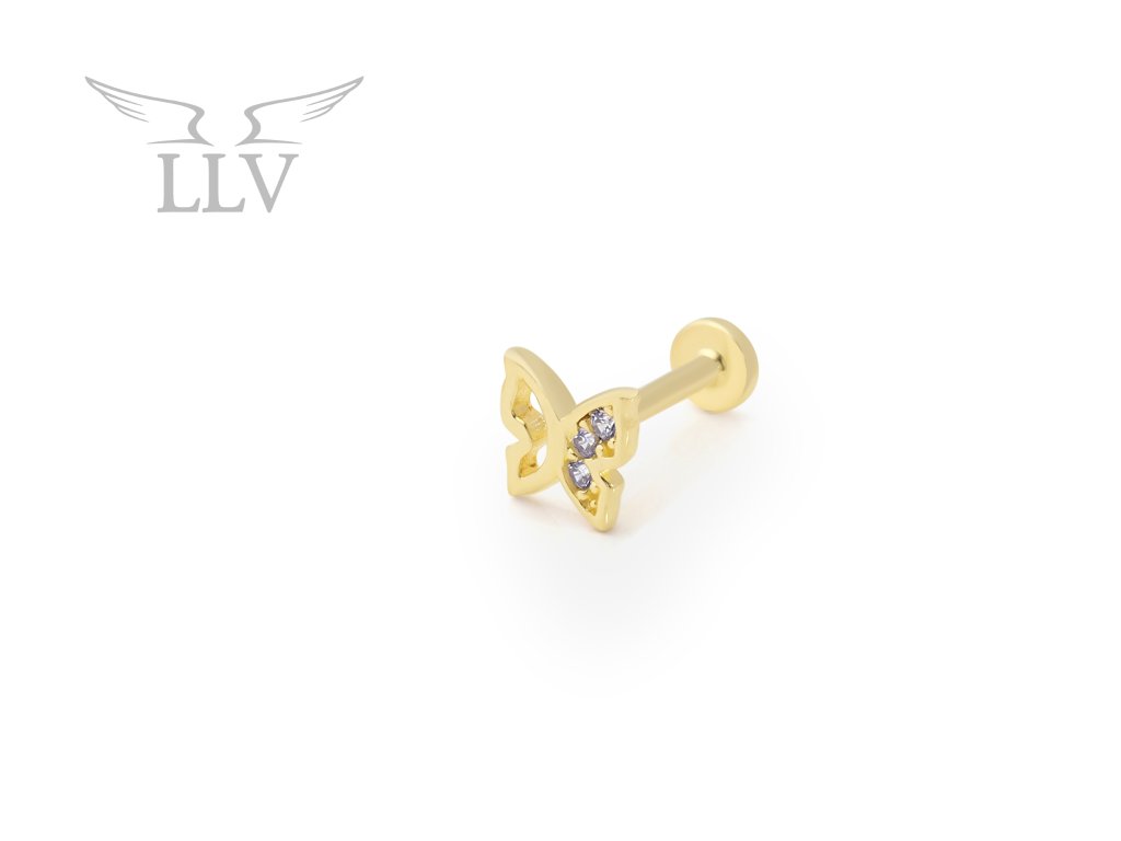 Zlatý piercing labreta motýl se zirkony LLV92-GPI066LB