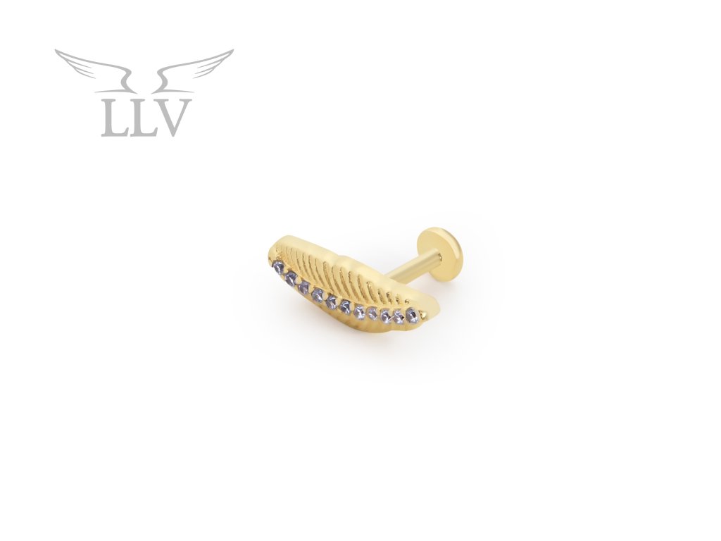 Zlatý piercing labreta pírko zdobené zirkony LLV92-GPI116LB