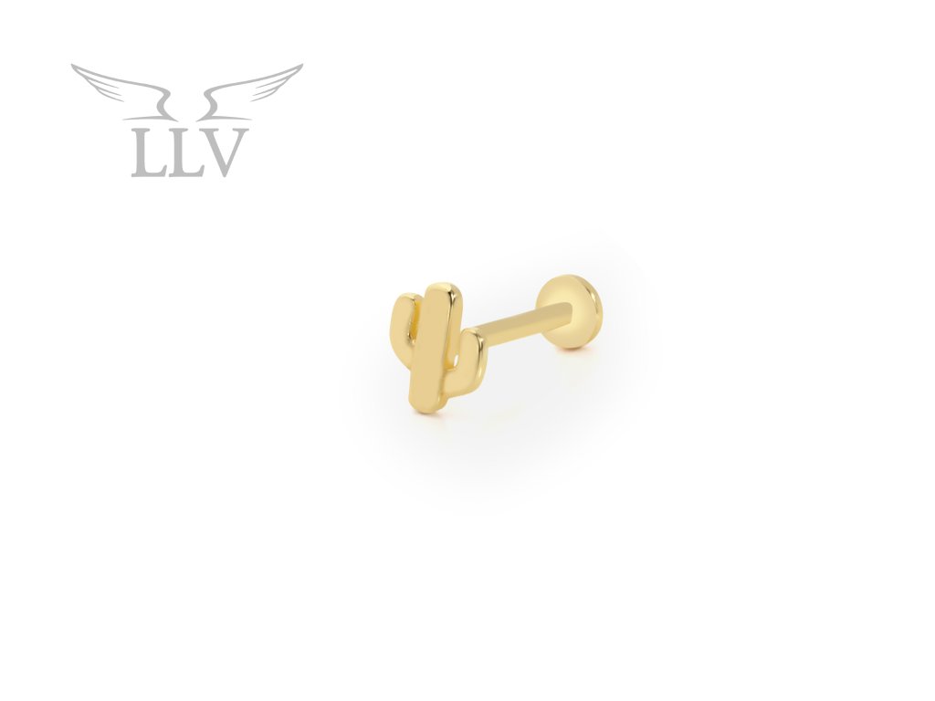 Zlatý piercing labreta s kaktusem LLV92-GPI006LB