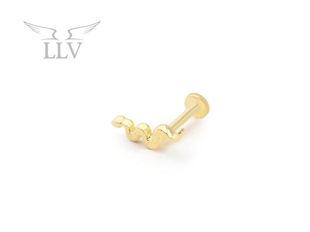 Zlatý piercing labreta s motivem hada LLV92-GPI002LB
