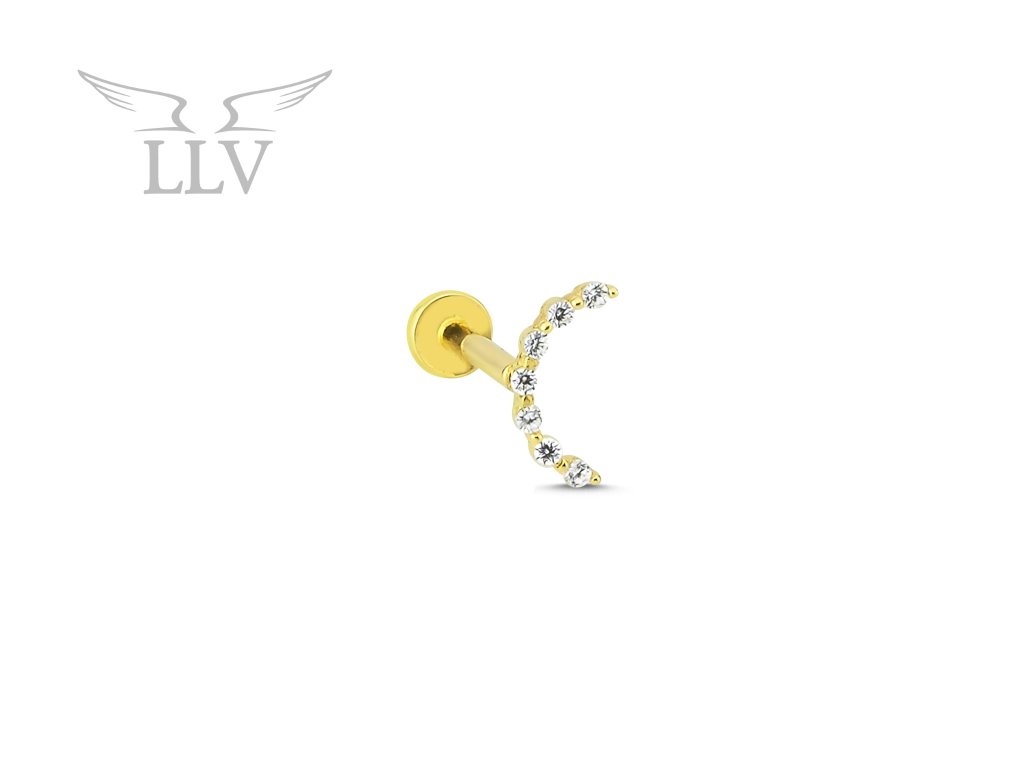 Zlatý piercing labreta s obloukem zdobeným zirkony LLV92-GPI028LB