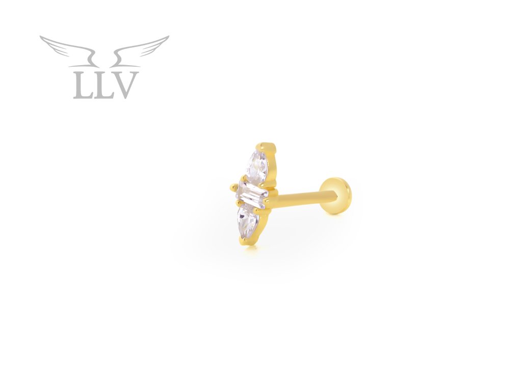 Zlatý piercing labreta se zirkony LLV92-GPI026LB