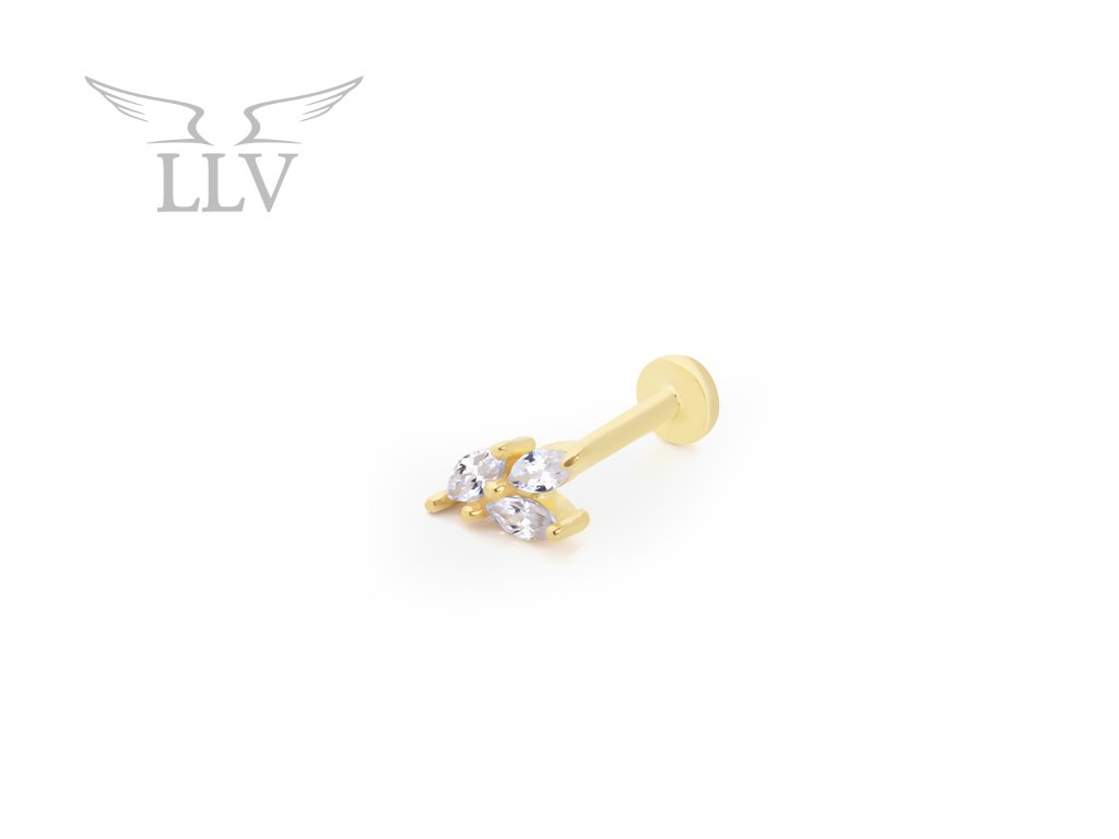 Zlatý piercing labreta se zirkony s motivem lístečků LLV92-GPI087LB