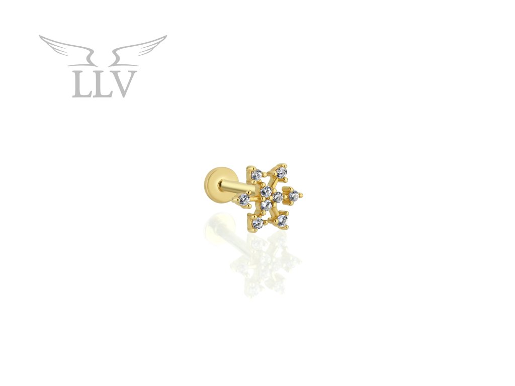 Zlatý piercing labreta vločka se zirkony LLV92-GPI110LB