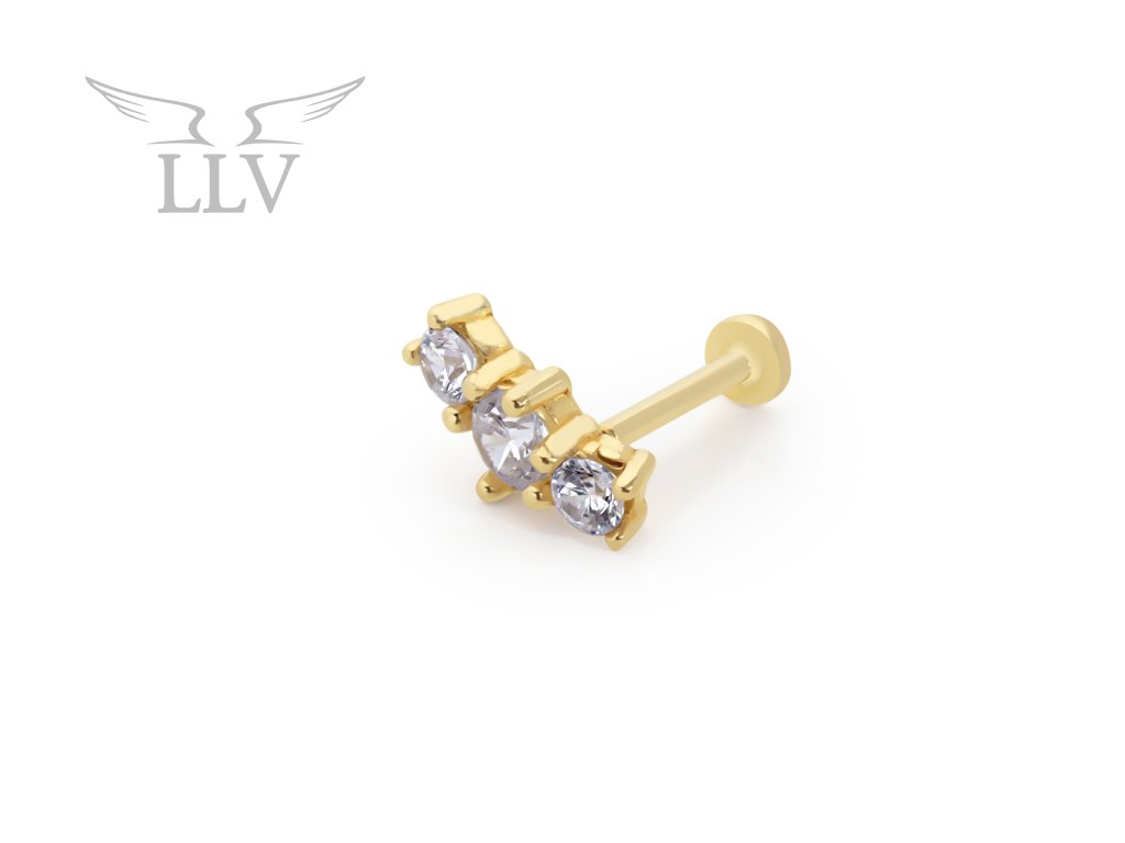 Zlatý piercing labreta zdobená zářivými zirkony LLV92-GPI117LB