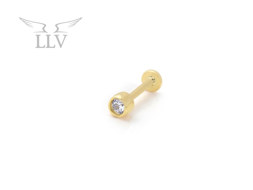 Zlatý piercing labreta zdobená zirkonem LLV92-GPI016LB