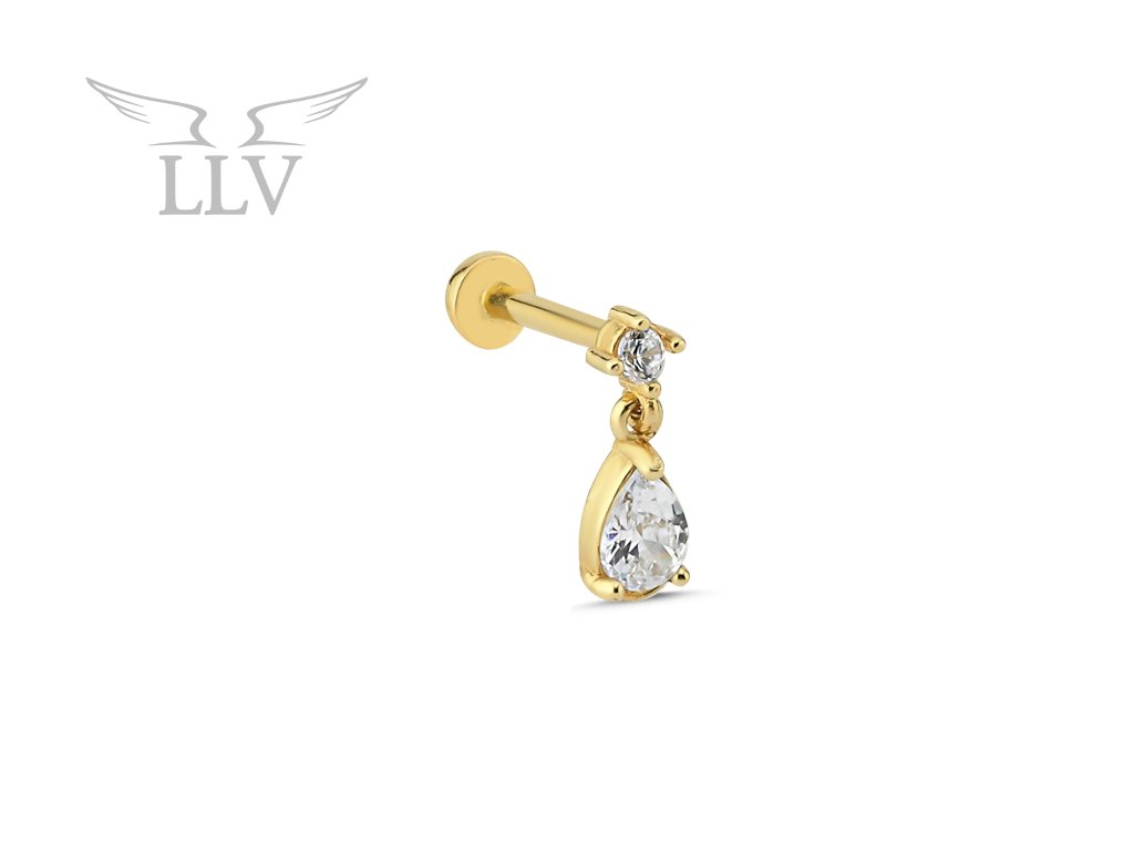Zlatý piercing s ozdobou ve tvaru kapky je doplněný vnitřním závitem, který zajišťuje pohodlné nošení v uchu, nosu i rtu. Ideální volba pro všechny, kdo hledají decentní šperk s kapkou originality.