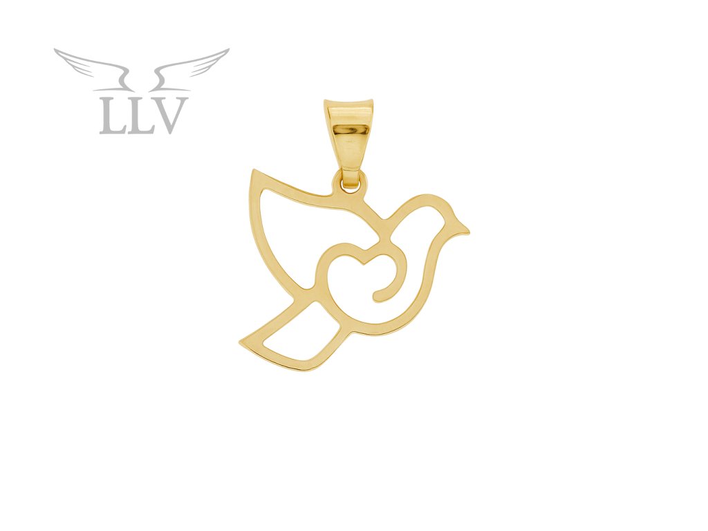 Zlatý přívěsek holubice se srdcem LLV31-GP048