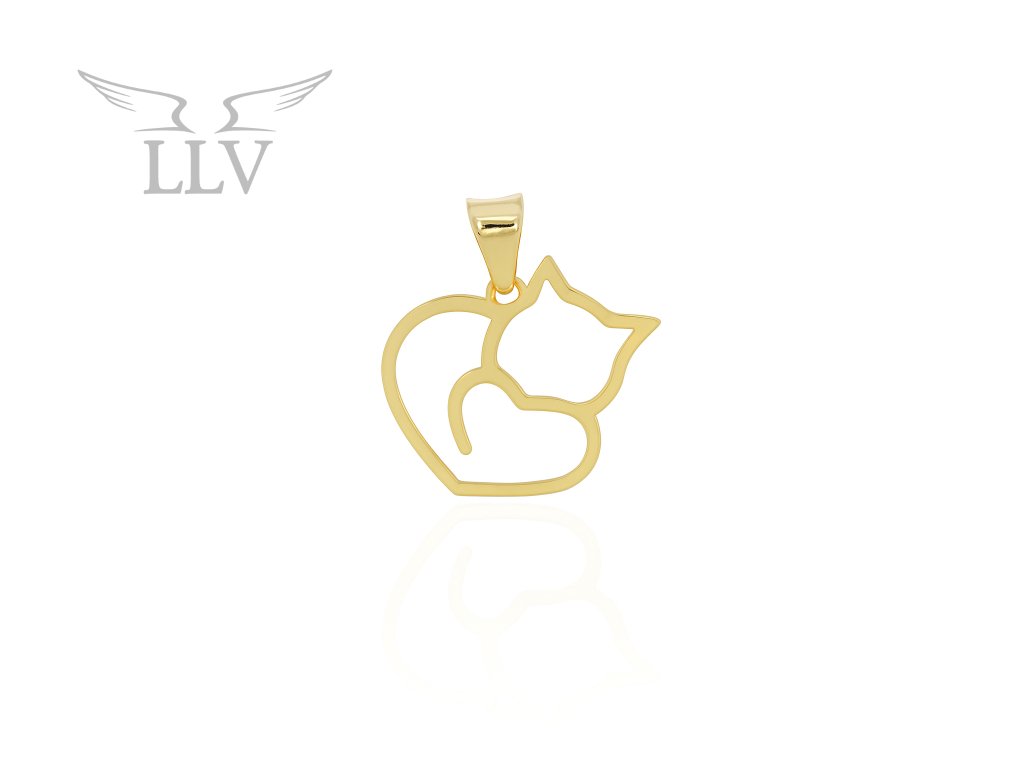 Zlatý přívěsek kočka se srdcem LLV31-GP049