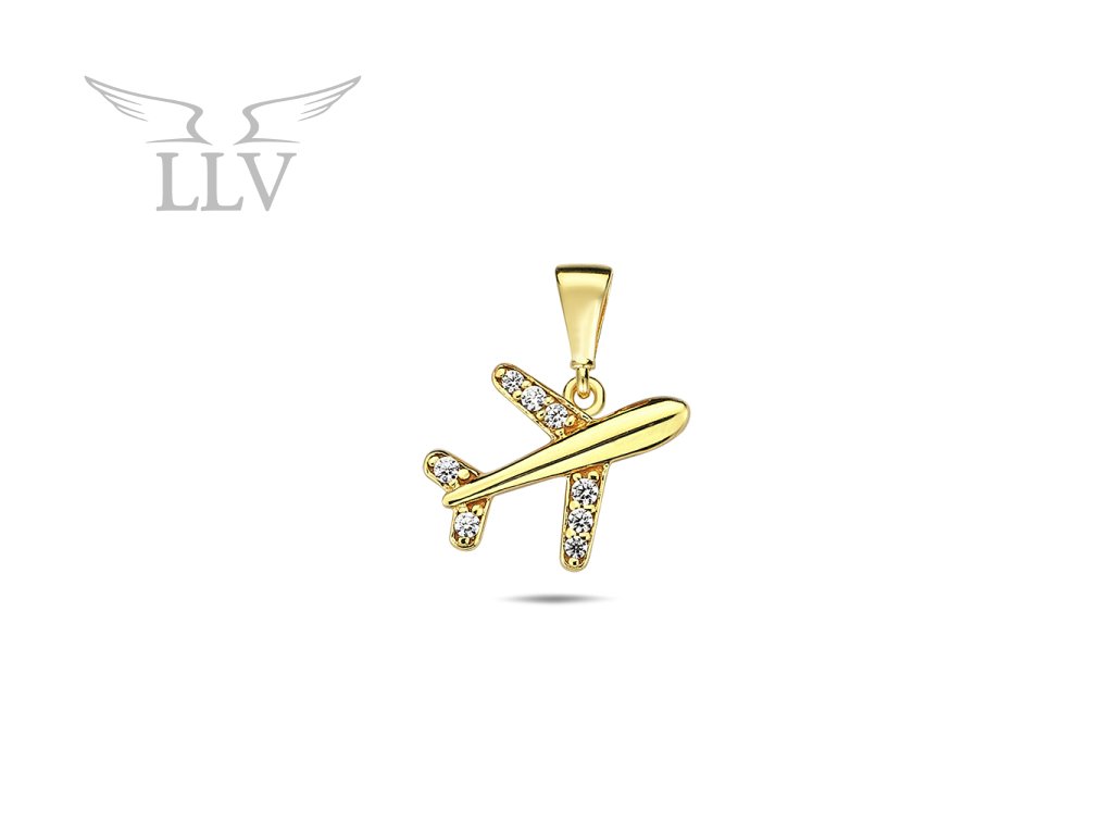 Zlatý přívěsek letadlo se zirkony LLV98-GP027