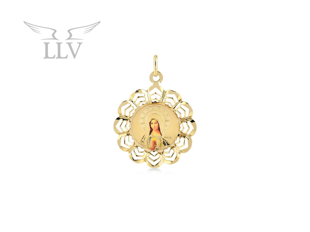 Symbolický přívěsek s Madonou je vyrobený ze žlutého 14kt zlata. Rámeček přívěsku je ozdobně prořezáván a uprostřed přívěsku je nádherným gravírem vyobrazena Panna Marie. Povrch šperku je v lesklé povrchové úpravě. Udělejte radost sobě nebo svým blízkým tímto symbolickým šperkem, který Vás bude chránit a doprovázet celý život.