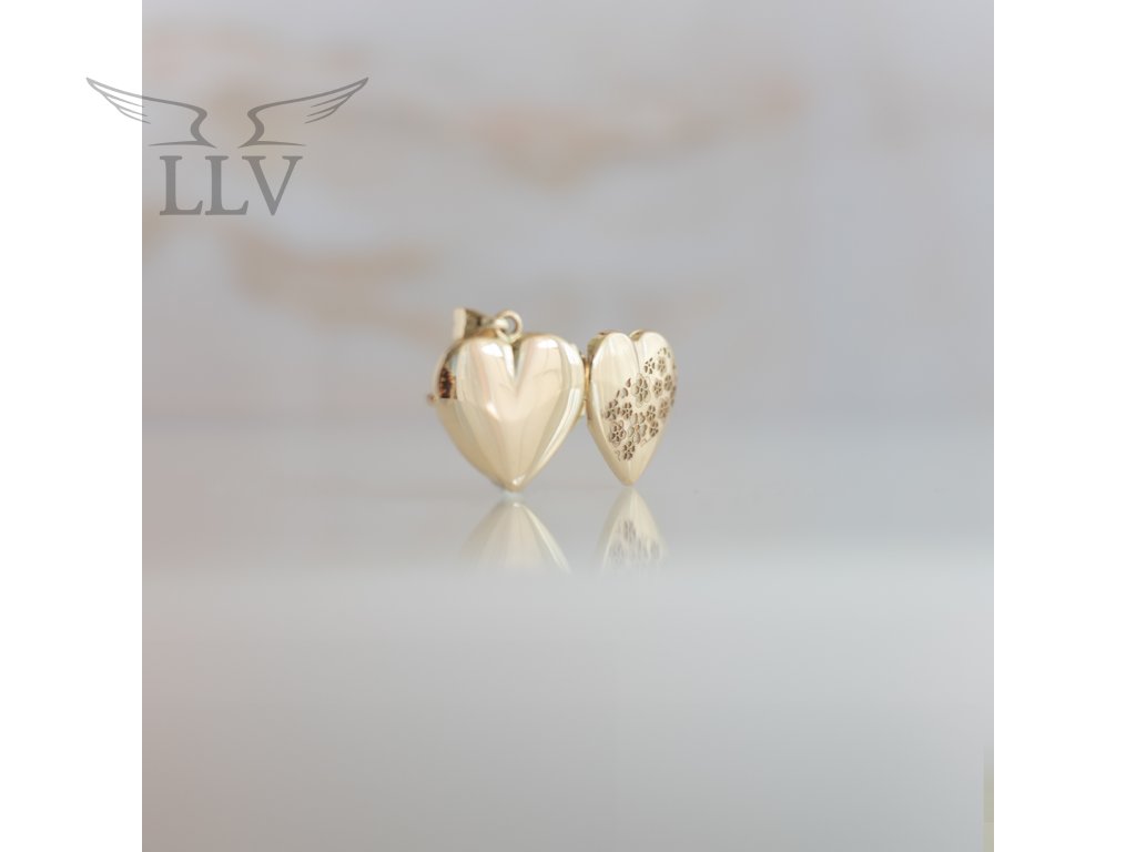 Romantický přívěsek – medailonek ve tvaru srdce ze žlutého 14kt zlata – je ideálním šperkem pro uchování nejcennějších vzpomínek. Jedna strana medailonku je hladká a zářivě lesklá, zatímco druhá strana je zdobena jemným gravírem a romantickými květinovými výřezy, které šperku dodávají kouzelný a něžný vzhled.