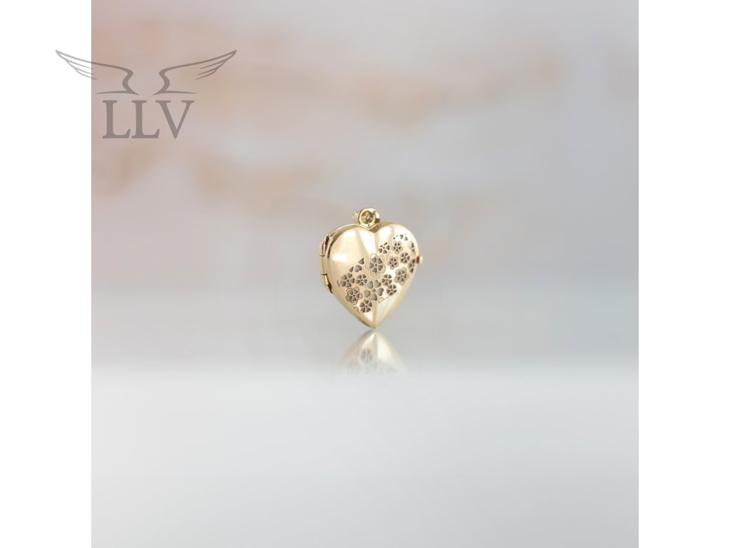 Zlatý přívěsek medailonek srdce s květinami LLV22-GP093