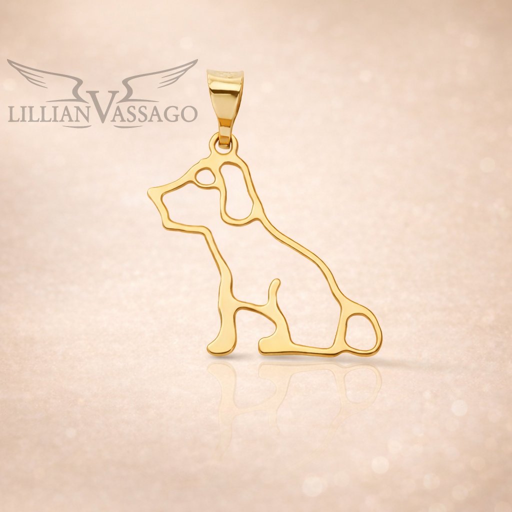 Zlatý přívěsek ze 14kt zlata s obrysem sedícího pejska je něžným a hravým symbolem lásky ke zvířatům. Jemná linie vytváří elegantní siluetu, která působí lehce, moderně a s osobitým kouzlem.