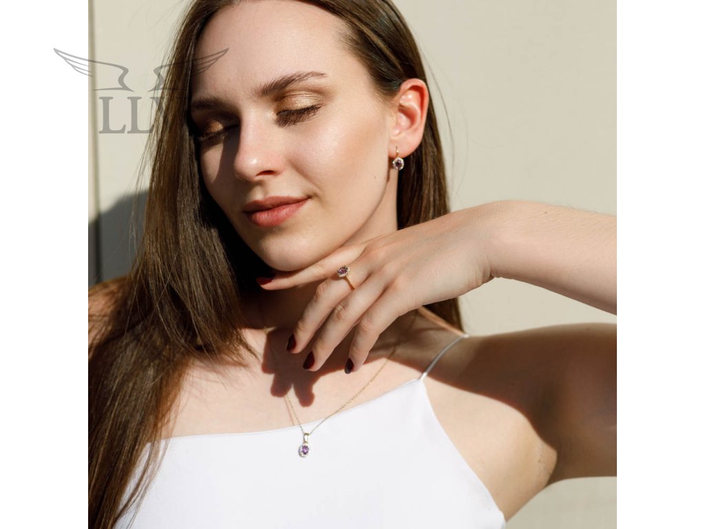 Zlatý přívěsek s ametystem a zirkony LLV31-GP059YA