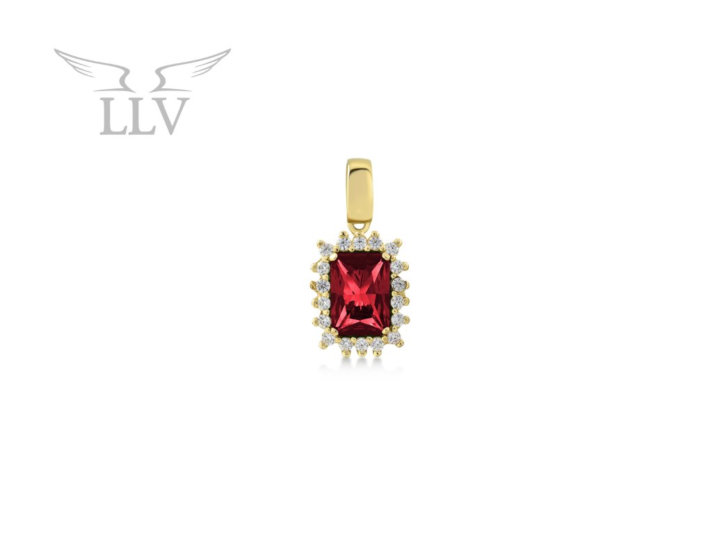 Zlatý přívěsek s rubínem a zirkony LLV22-GP053YR