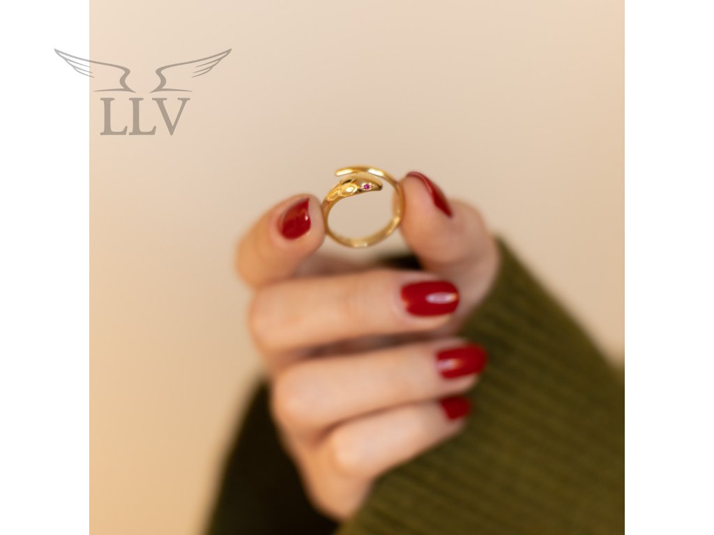 Hlava hada je zdobená červenými zirkony, které připomínají žhnoucí oči a dodávají šperku dramatický, podmanivý výraz. Detailní reliéf na povrchu navíc evokuje strukturu šupin a umocňuje celkový dojem luxusního a precizně provedeného šperku. Tento prsten je ideální pro ženy, které milují originální doplňky s charakterem a chtějí šperk, který je nejen ozdobou, ale i symbolem sebejistoty a osobní síly.