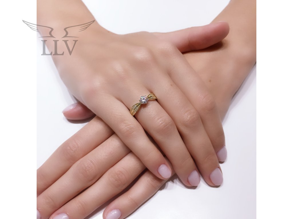 Elegantní zásnubní prsten s zirkony, žluté zlato LLV03-ENGR0742Y