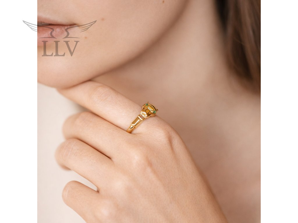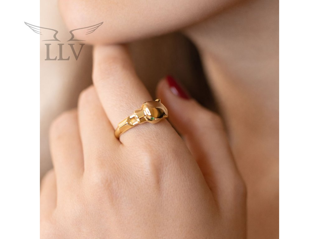 Lesklá zlatá obroučka podtrhuje luxusní vzhled prstenu a zvýrazňuje jeho unikátní zlatnické provedení. Tento motiv pantera je symbolem odvahy, energie a vnitřní síly, díky čemuž se šperk stává nejen ozdobou, ale také osobním talismanem. Ideální pro ženy, které milují originální šperky s charakterem a chtějí doplněk, který vyčnívá z davu.