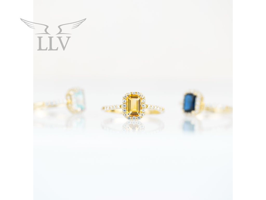 Zlatý prsten s citrínem a zirkony LLV22-GR004YC