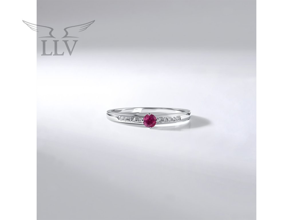Prsten s rubínem a diamanty, bílé zlato LLV59-DR141WRU