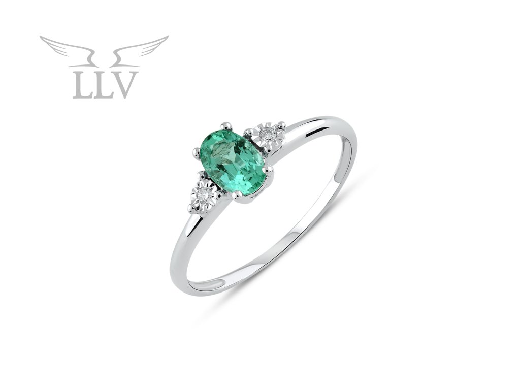 Prsten se smaragdem a diamanty v bílém zlatě LLV59-DR004WEM