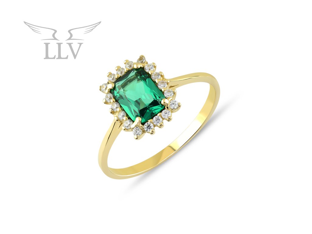 Zlatý prsten se smaragdem a zirkony LLV22-GR042YE