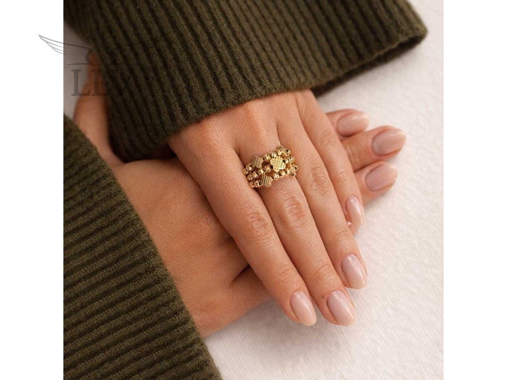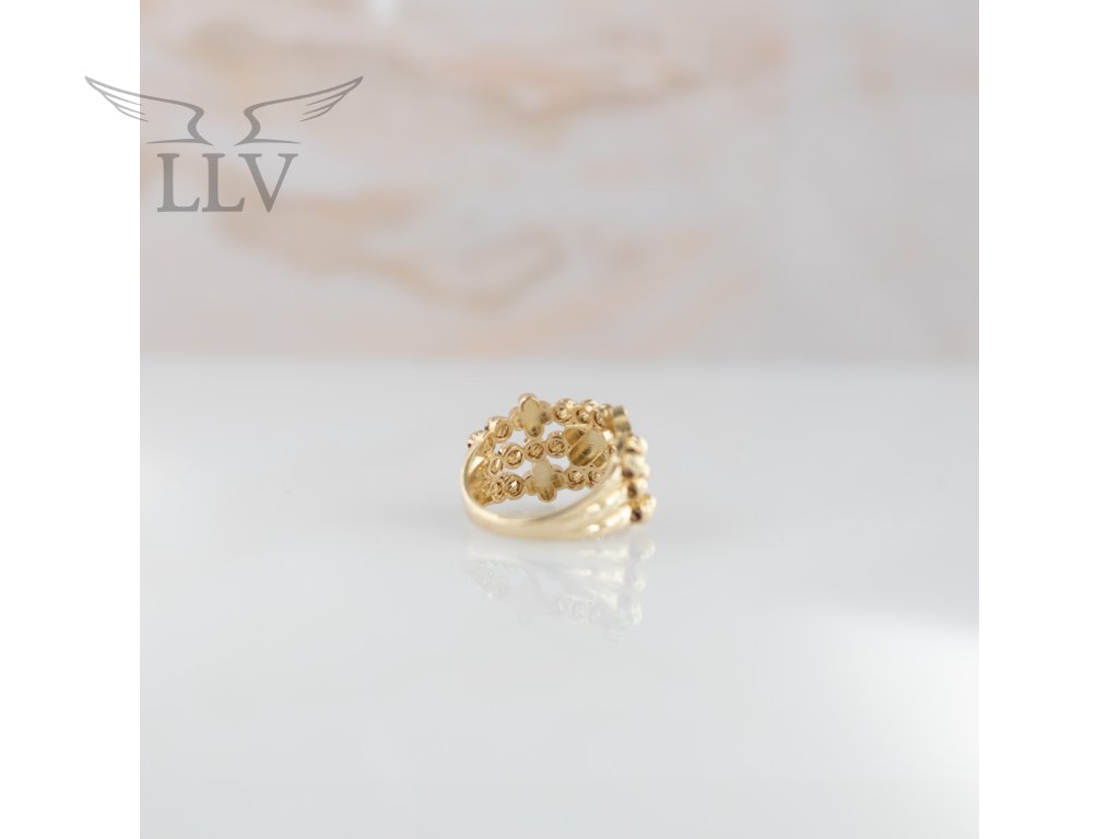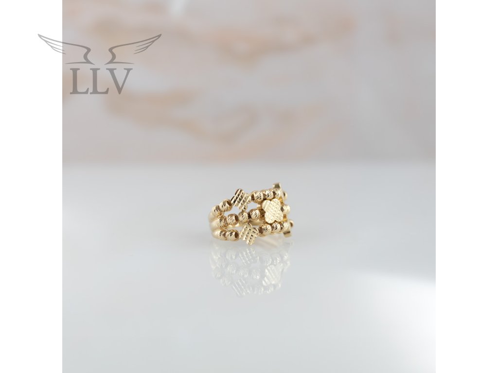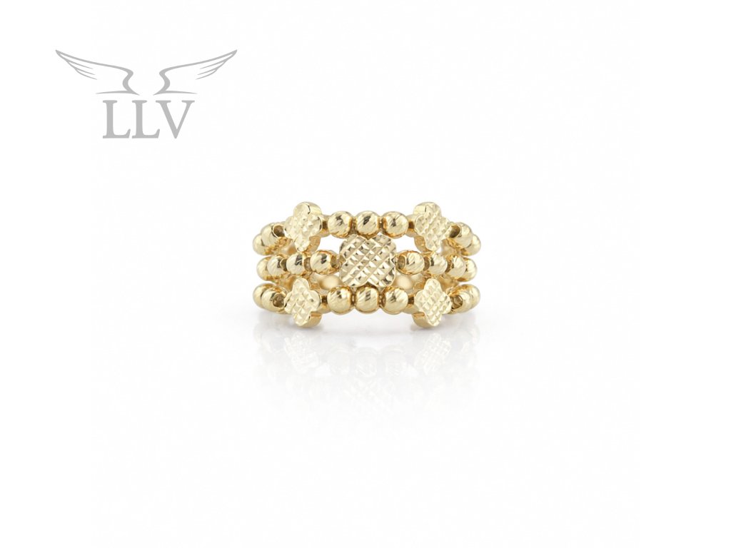 Zlatý prsten zdobený čtyřlístky a kuličkami LLV07-GR025