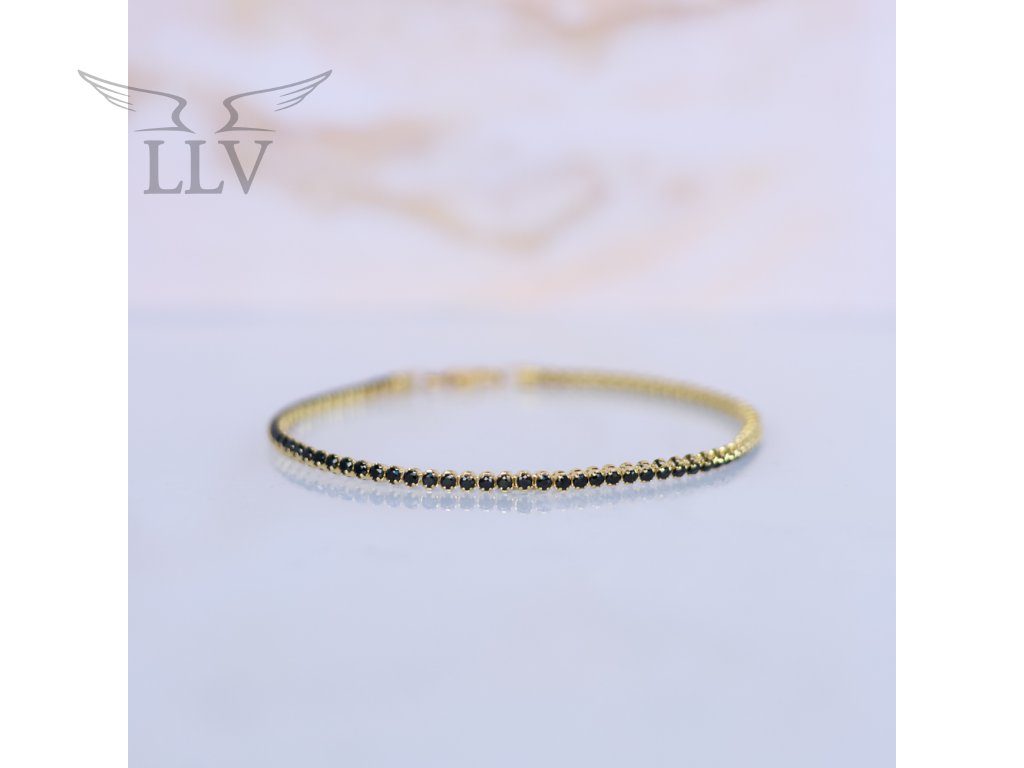 Zlatý tenisový náramek zdobený černými zirkony LLV03-GB001