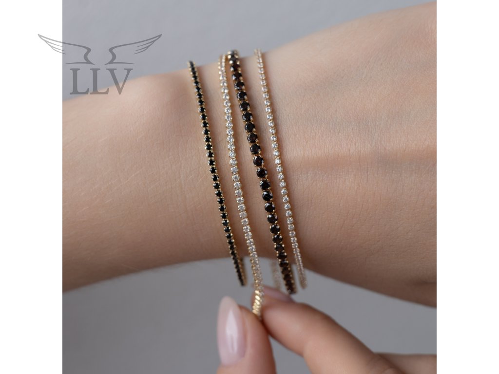 Zlatý tenisový náramek zdobený čirými zirkony LLV01-GB019